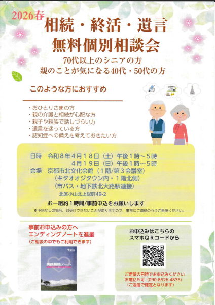 北文化会館で4月18日・19日に個別無料相談会開催。事前申込制。