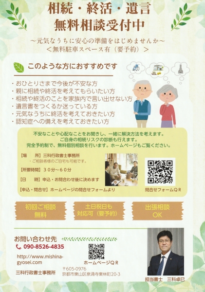 相続・遺言・後見など終活全般についてサポートしています。お気軽にご相談ください。